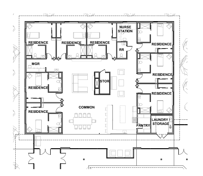 • Designed according to national standards for intentional and intimate (non-institutional) care – sunlight, hearth, great room, open kitchens, homey